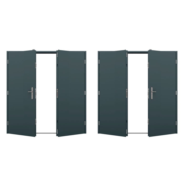 These shipping container double personnel doors have been engineered purposely for the shipping container manufacturing and conversion industry. PU foam insulation, a fully welded, prebuilt frame and sealed joints make for a stiff, rigid door set ready for easy installation when welding into a shipping container. An increased tolerance has been factored in to allow for movement in the shipping container when in transit or when positioned on an uneven surface. Please be advised the industry standard for fitting container doors is with a goalpost or some kind of frame. If you require one of these, before placing an order for the door, please contact us via email and we can try source one for you.