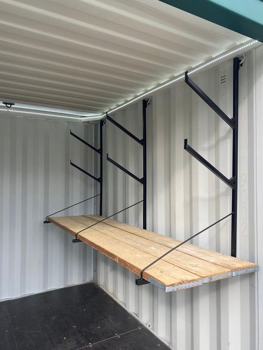 Maximize your workspace inside shipping containers with our durable, easy-to-install Work Bench and Pipe Rack system. No drilling, bolting, or welding required — simply hook into place and get to work.